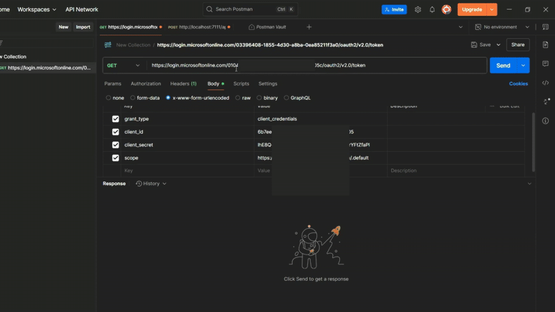 Postman/API Testing Tools: Use OAuth 2.0 client credentials flow with your Azure app registration details